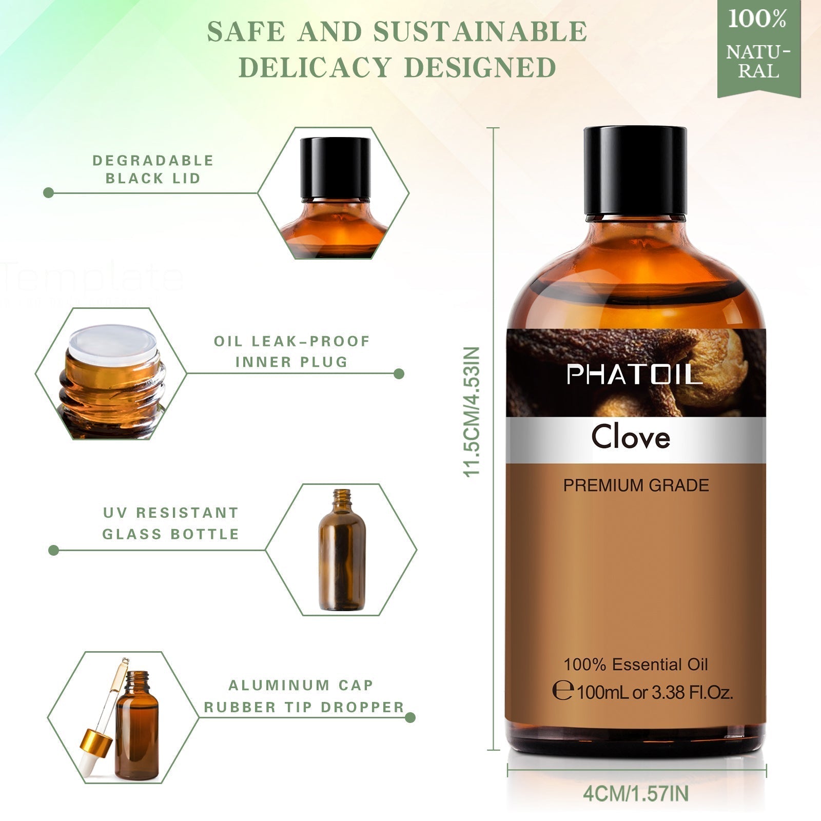 - 100ml/3.38oz. UV-resistant amber glass bottle with a dropper