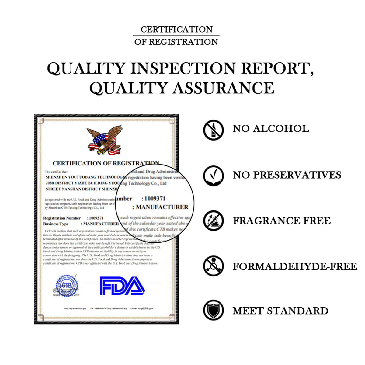 - Quality certificate: No alcohol, no preservatives, fragrance-free, formaldehyde-free