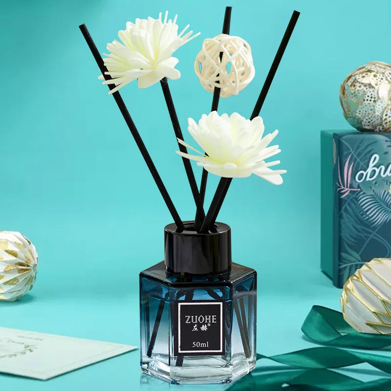 Elevate your surroundings and indulge your senses with the 50ml Hexagon Aroma Oil Stick Diffuser With Natural Sticks. This innovative and convenient diffuser set creates a personalized and inviting atmosphere wherever you go.